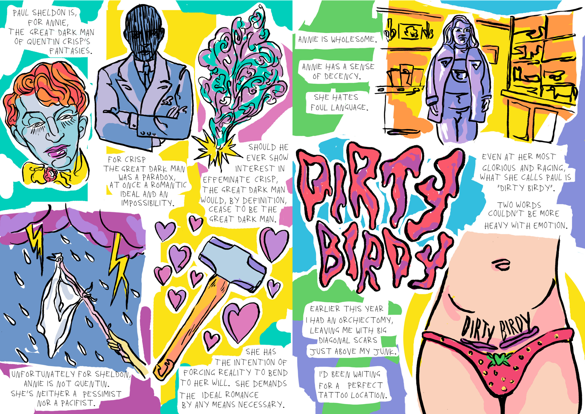 There’s an old cover of the Erotic Review (Issue 100 from June 2009) that depicts a birthday lunch to celebrate the magazine’s 100th edition. The scene is one of revelrous, risqué chaos: women with their tops off pop bottles of champagne, sex toys — seemingly given out as party favours — are strewn across the furnishings, and one woman, seen only from behind (her skirt hoisted up to reveal her stockings, suspenders, and rather sexless knickers) is, to put it crudely, sucking off a man under the table while simultaneously fondling another out of shot.