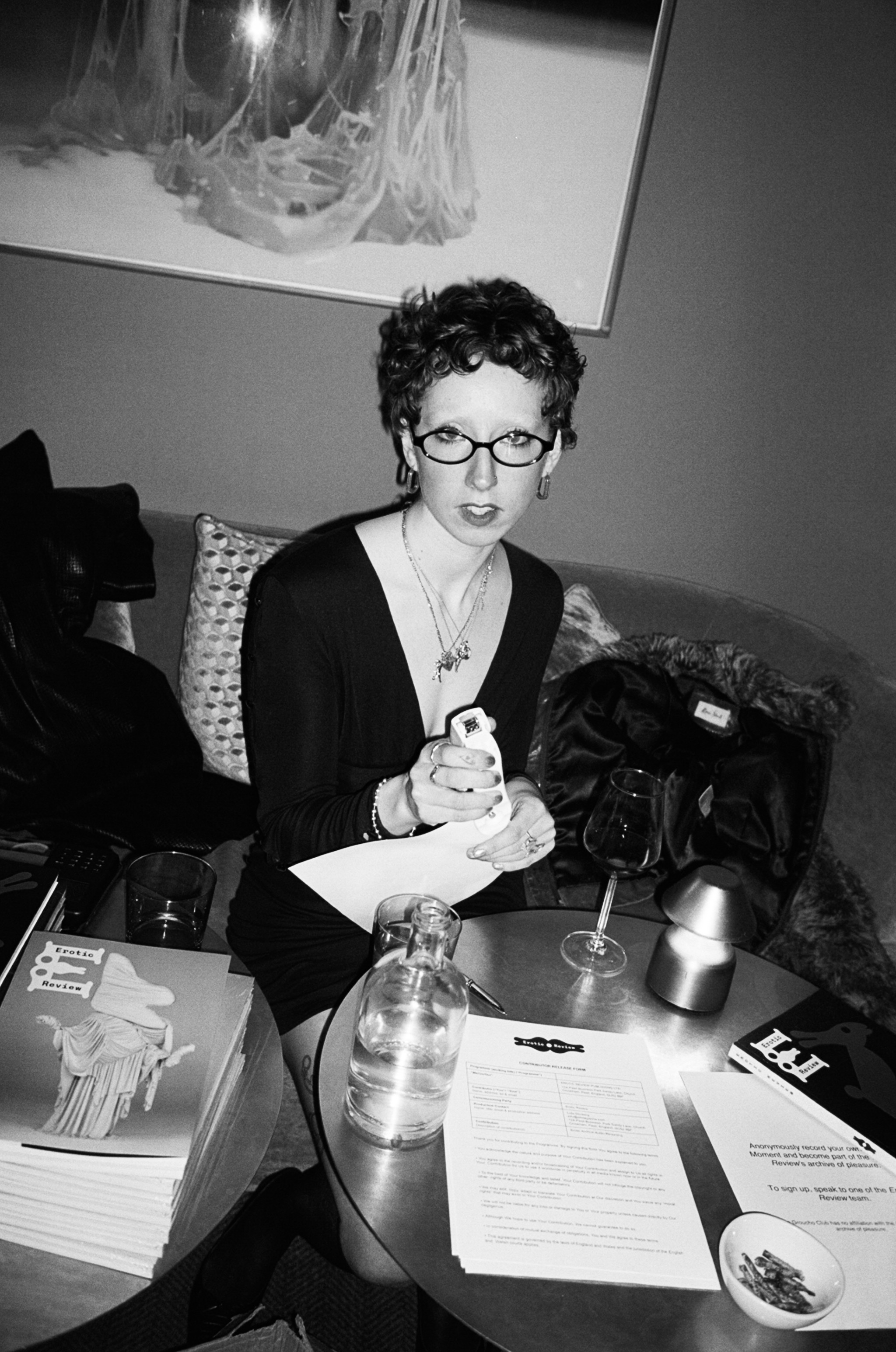 We had readings of work by Lauren John Joseph, Hugo Tepest, Jamie Brisick and Bregje Hofstede, read by actors Darcy Dixon, Teddy Hinde and Kit Redding. Actor and writer Megan Prescott gave a special performance. The early evening was soundtracked by frequent ER collaborator DJ Heavenly Wisdom. Chang Gao's film Erotic Proximity played in the screening room all evening. And guests recorded their own Erotic Moments up in Room 301 with our amazing sound producer Emma Colman.